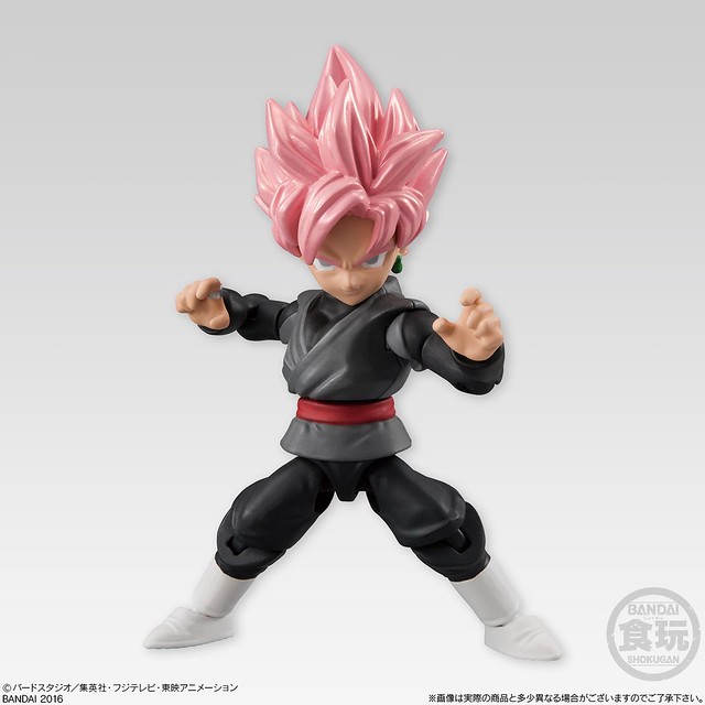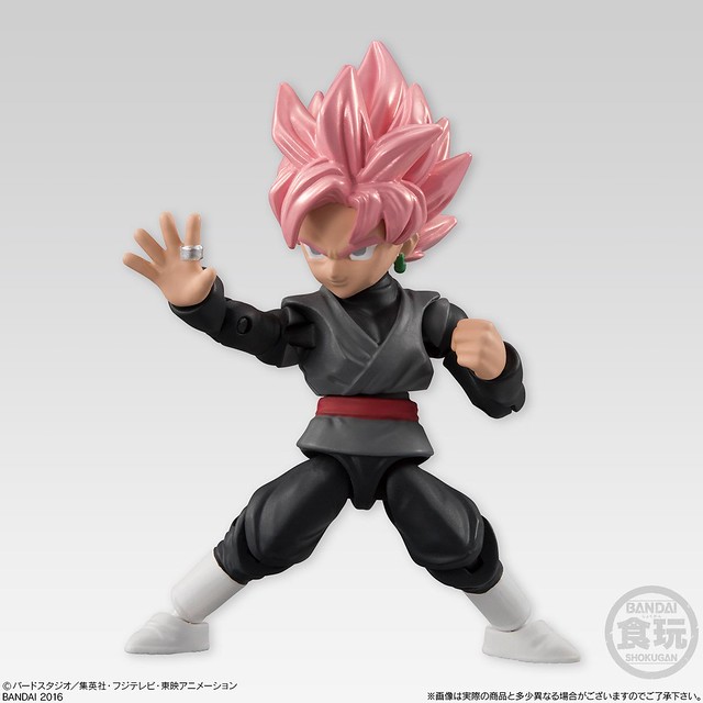這次以最新《七龍珠超》動畫當中登場的人物商品化,收錄了「孫悟空」、「貝吉塔」、「特南克斯」與謎樣的粉紅色頭髮的「黑悟空玫瑰(ゴクウブラックロゼ)」(名稱暫譯)等等四位人物,這個系列都將角色人物縮小成盒玩尺寸大小,就是標榜著有約66公厘(6.6公分)的大小左右,全身約有16處的可動關節,附有交換用手首的配件,喜愛鳥山明老師經典漫畫作品《七龍珠》系列的玩具人可以參考一下歐!