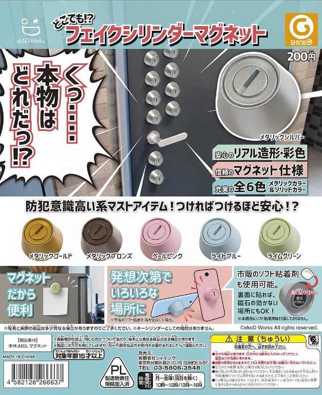 專門生產轉蛋玩具的日本SHINE-G玩具公司今日發表了新商品「偽裝鎖孔磁鐵」(フェイクシリンダーマグネット)預計於2016年11月發售的消息,並釋出詳細商品資訊及預覽圖。