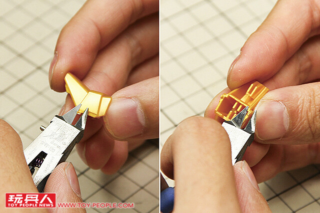 ▼ 首先是基本的第一段剪裁,將零件從框架上取下。