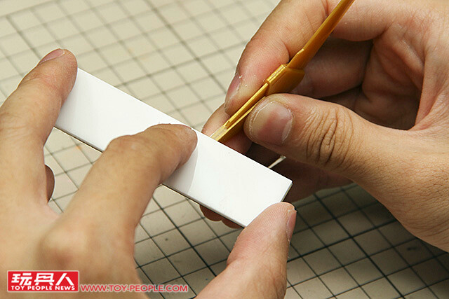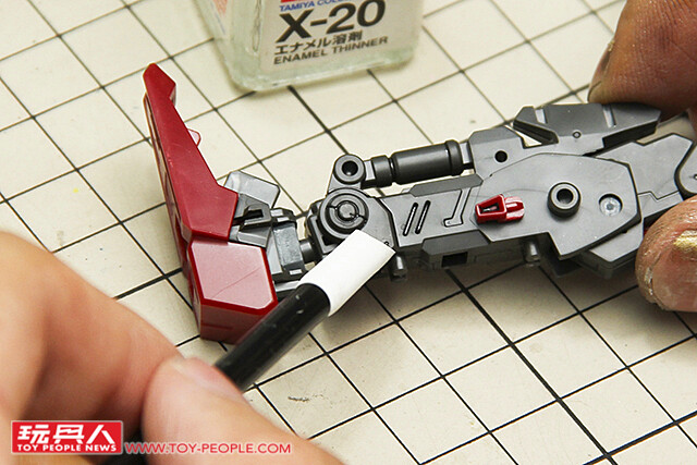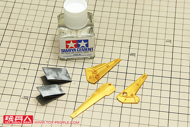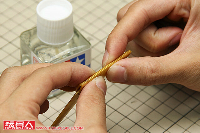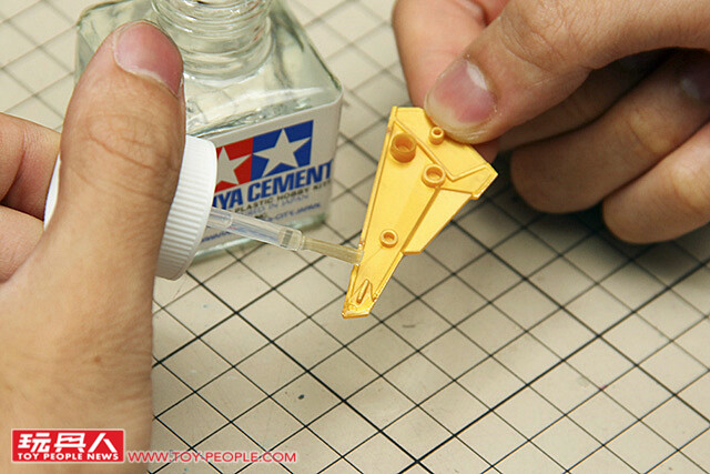▼ 首先在需要黏合的地方塗上模型膠水,這裡的膠量一定要足夠,無縫處理才會成功喔~