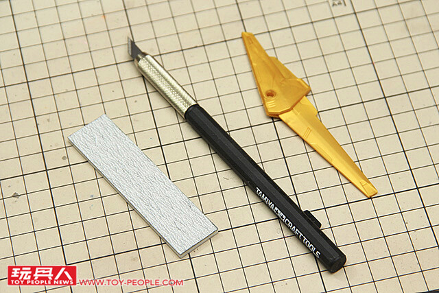 ▼ 等待24小時的硬化之後,拿出筆刀與砂紙,準備磨除溢膠。