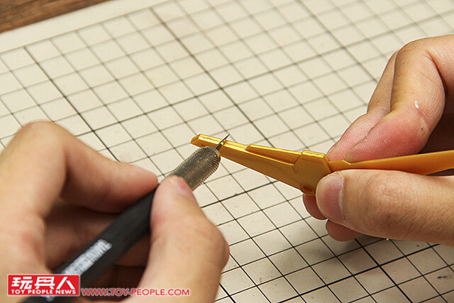 ▼ 首先將過多的溢膠用筆刀刮除。