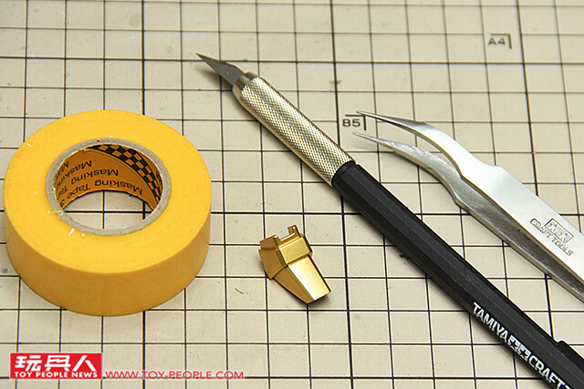 ▼ 上完第一種金色後,要進行遮蓋分色,所以請拿出遮蓋膠帶、筆刀、鑷子。