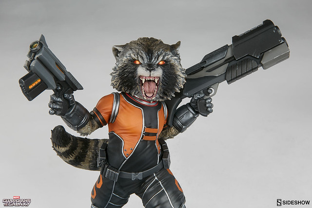 繼推出了1/4 比例的「葛摩菈」(Gamora)雕像作品之後,Sideshow Collectibles 公司相隔許久之後,終於又將在其旗下最高水準的「Premium Format™ Figure」雕像系列推出星際異攻隊(Guardians of the Galaxy)系列的作品啦!這次將要推出的就是令許多人都非常喜愛的「浣熊火箭」(Rocket Raccoon)1/4 比例不怎麼巨大的雕像作品。