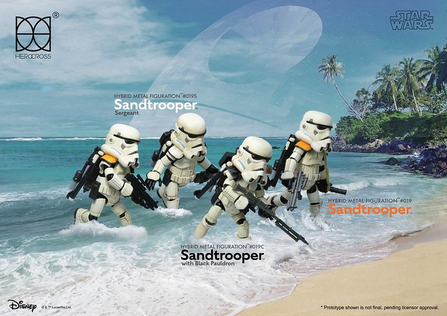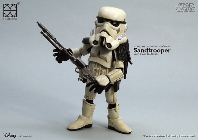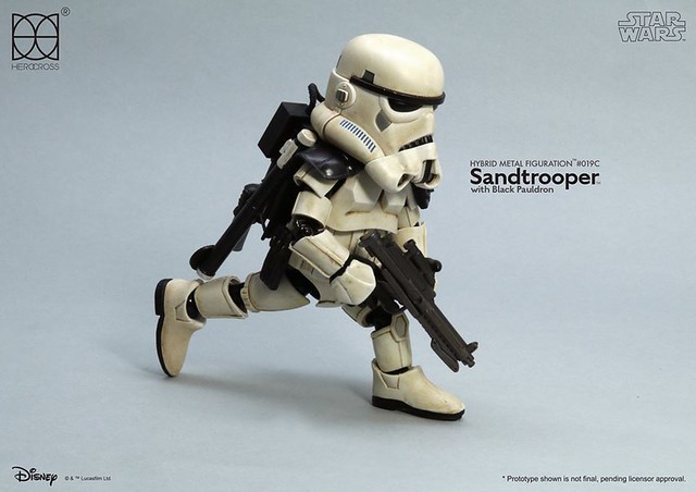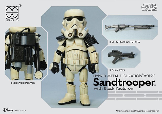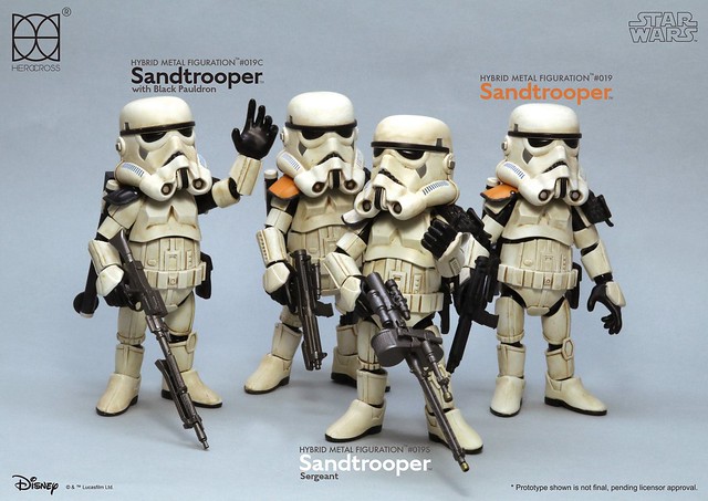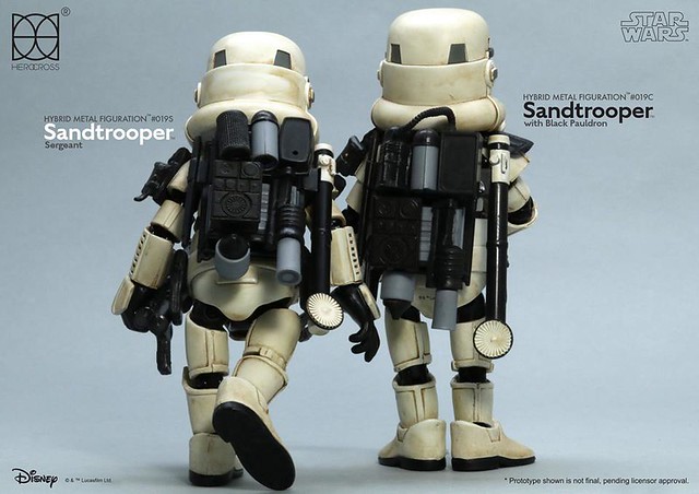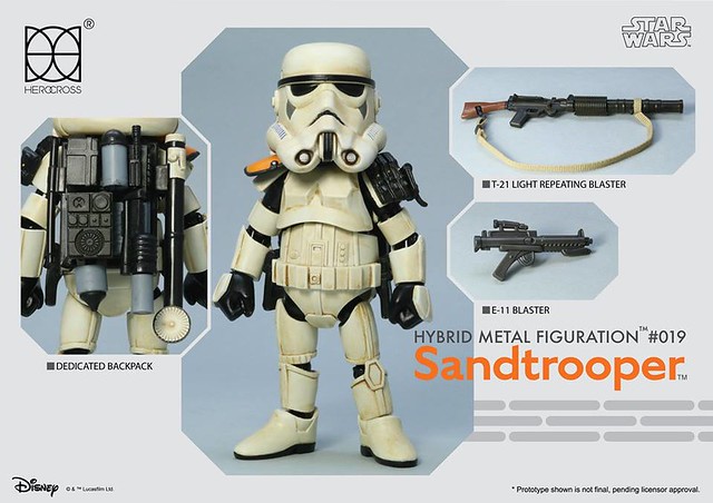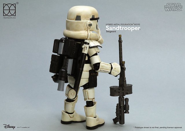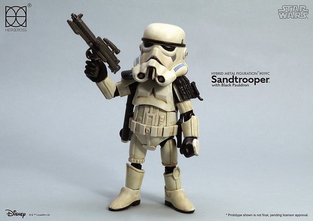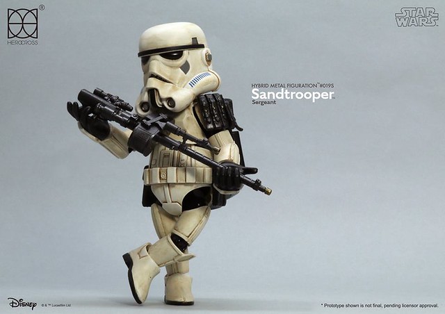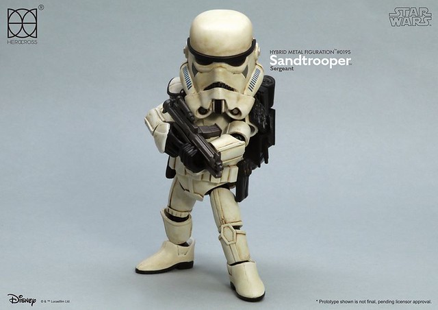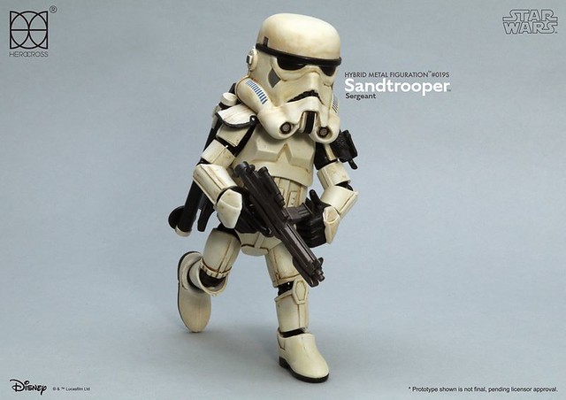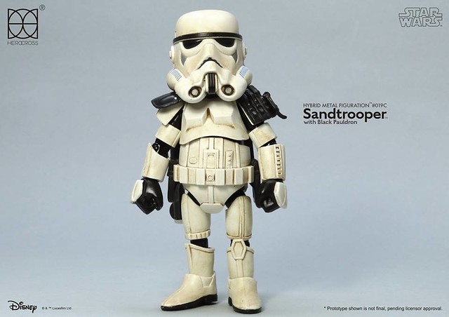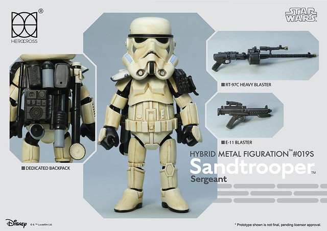 知名合金玩具品牌「HEROCROSS」公司繼推出了小隊長版本帝國沙漠兵的作品之後,又將在旗下HMF 系列(Hybrid Metal Figuration)推出不同軍階版本的「帝國沙漠兵」(Sand trooper)的合金作品。