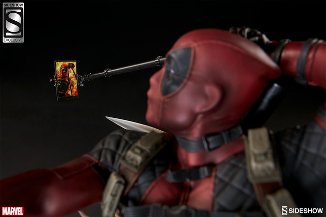 這次要推出的惡棍英雄「死侍」的1/4 比例雕像作品,這次的雕像採用了包括polyresin、金屬、PVC 等不同的複合式材質打造而成。值得一提的是,這次Sideshow Collectibles 官網限定的版本是附上將左手拿機關槍的配件替換成「自拍棒」(selfie stick),搭配著嘟嘟嘴的頭雕實在是太讚了啊!有興趣的玩具人不要錯過啦!
