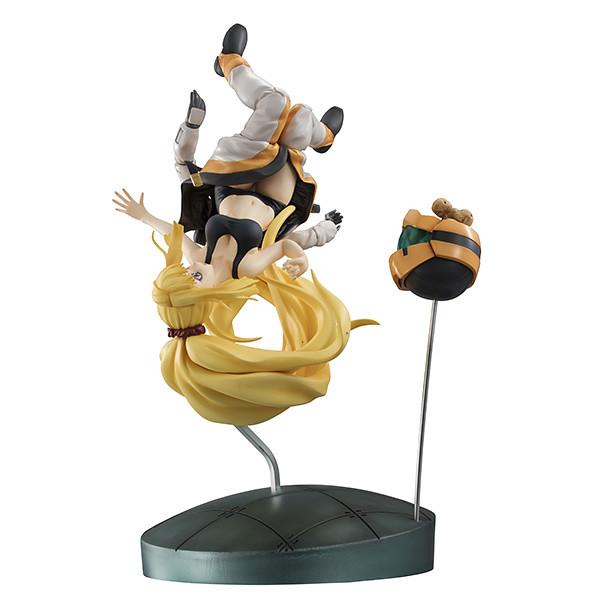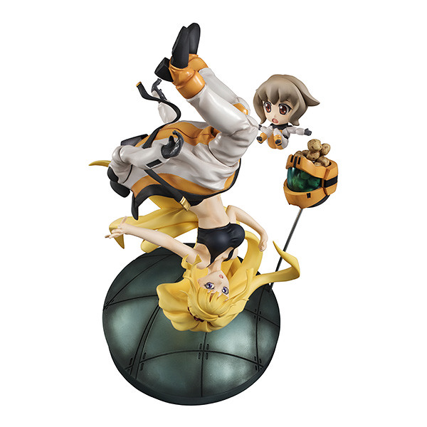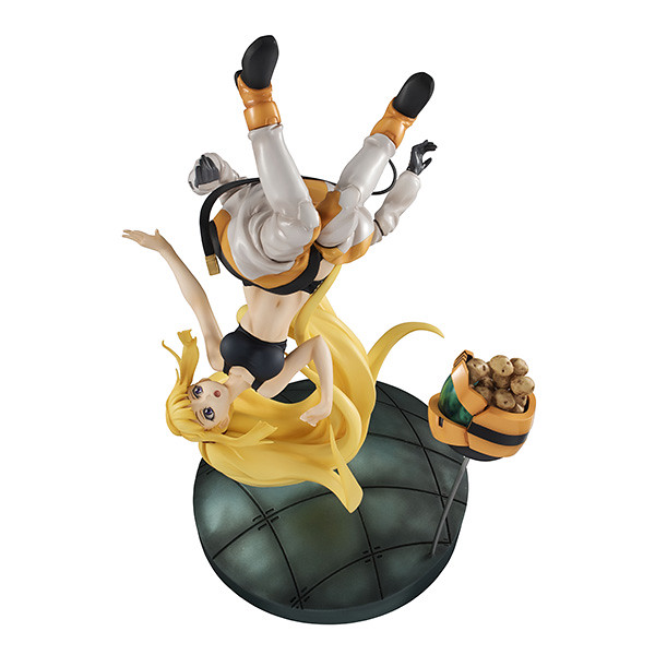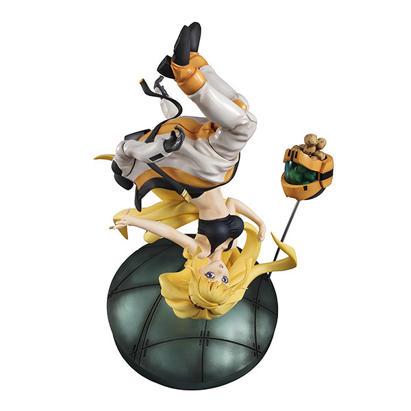 全新系列「GGG-DX」的「庫德莉雅·藍那·伯恩斯坦」採用了嶄新的無重力狀態姿勢,重現動畫第一期中庫德莉雅在宇宙船換裝時上下倒轉的場景,並以強韌的金屬支架插入庫德莉雅的頭髮中固定(不愧是),一旁的太空帽中還放有大量精緻寫實的馬鈴薯。造型與過去GGG商品相比不但細節更加豐富,塗裝也維持以往的水準,能將庫德莉雅的魅力完全展現!底座的地板則製作成變形的曲面狀,從上方俯視時能營造出魚眼透視的效果。此外初回特典還會附上Q版造型的「雅朵拉·米克斯塔」能一同擺設,非常可愛!