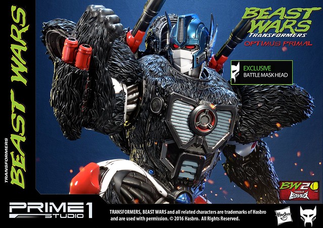 1996 年上映的經典動畫作品《野獸大戰》(Beast Wars),是世界上最早使用全3D 電腦動畫所製作的先驅之一,故事敘述「極限動物」(Maximals)為了追擊偷竊了重要文物、以「恐龍王」(Megatron)為首的「掠食金剛」(Predacons),雙方在遠古的地球上展開激烈的衝突。 這次「Prime 1 Studio」的《野獸大戰》系列作品,將以「極限動物」的領袖、能夠變形為黑猩猩型態的「金剛王」(Optimus Primal) 來作為值得紀念的首款作品。