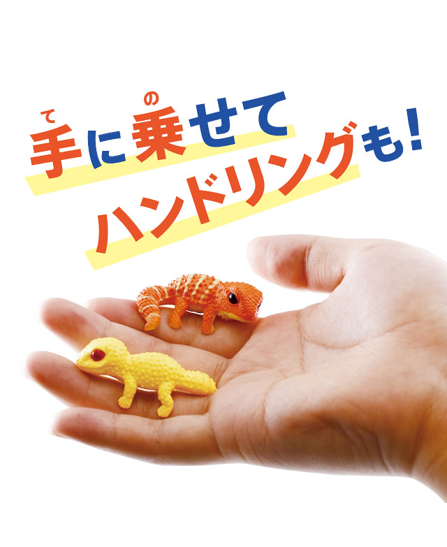 推出多款有趣動物為主題的轉蛋作品「Epoch品牌」,其中將動物的姿勢設計成為「指の系列(ちんまり/Chinmari系列)」相當受到轉蛋玩具人的歡迎,像是「指上的燕子」、「指上的鸚鵡」、「指尖上的海豚」、「指上的松鼠」、「指上倉鼠」或是「指上的小鴨」等等多款有趣的轉蛋作品,這次將推出以「豹紋壁虎(Leopard geoko)」與「鬃獅蜥(Bearded dragon)」兩款"爬蟲類"為題材來設計其系列的轉蛋商品。