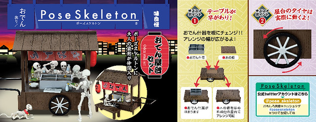 知名盒玩品牌RE-MENT 玩具公司旗下廣受許多玩具人喜愛的「Pose Skeleton」系列又將推出最新的配件包組合,這次推出的作品為「關東煮攤車」(おでん屋台セット)。喜愛辦公室桌上擺放小物以及療癒系作品的玩具人請千萬不要錯過這次冬季限定配件的機會啊!誤~~