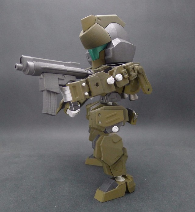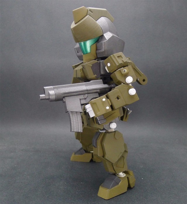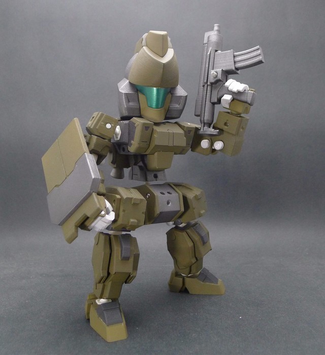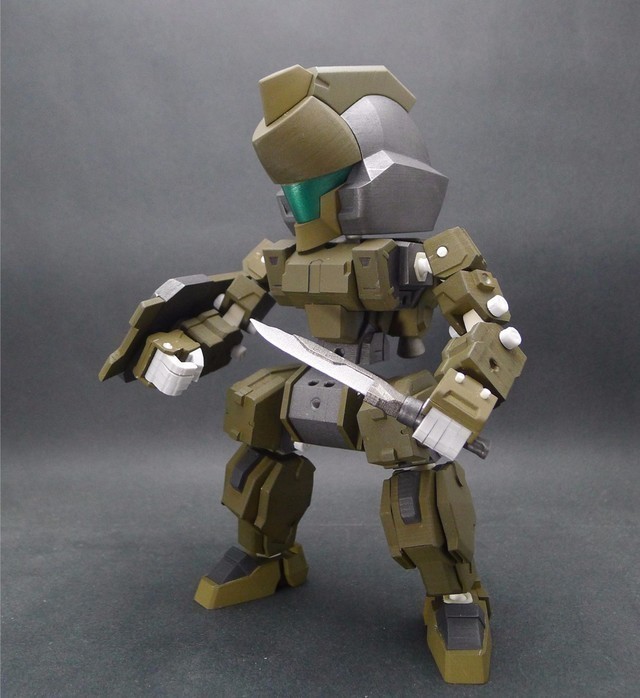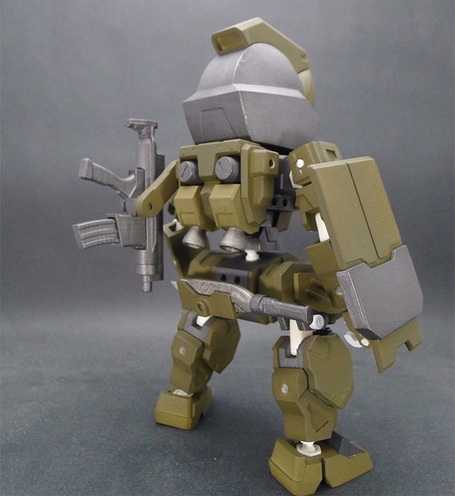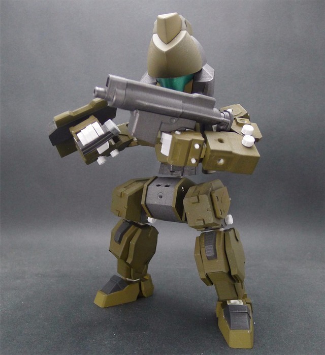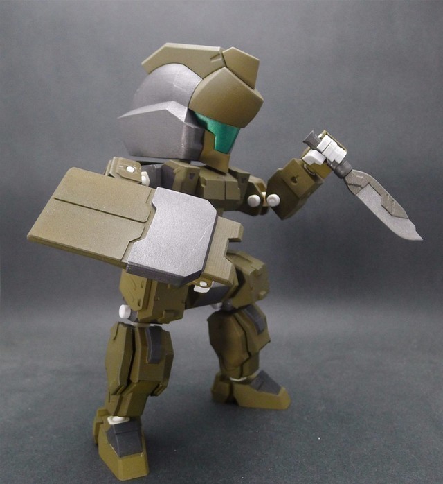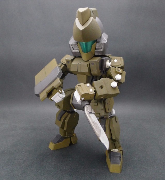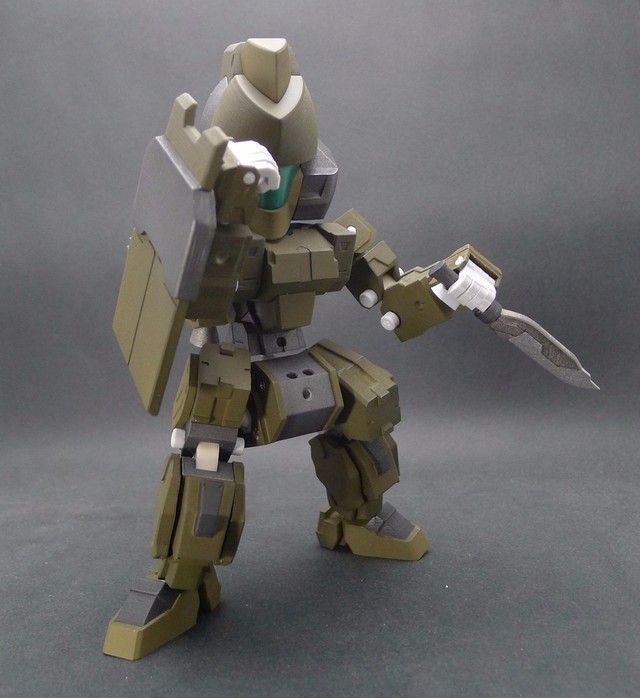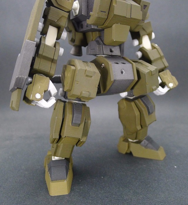 因為這次嘗試了將整個腿部用裝甲包裝起來的方式,所以可動度降低了不少,不過這也是一次很好的經驗,下次設計相同類型的機體時就可以注意可動性這件事情。在電腦上看還不覺得,但是組裝起來之後才發現,這款作品好像有點類似【裝甲騎兵】的機體??!!