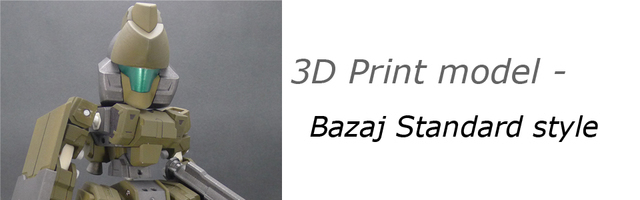 這個作品與先前一樣,是以Bazaj的本體為主,加上新裝甲的作品。原始的設定是類似初鋼或是吉姆那樣的機體,帶有基本的武裝,泛用性高的設定。因此在武裝方面只配備了一把中短程步槍、一把實體小刀,以及一面盾。