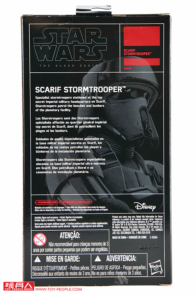 能夠與《星際大戰外傳: 俠盜一號》黑標6吋系列第二波的「斯卡里夫行星風暴兵中隊領導」搭配的「斯卡里夫行星風暴兵」,原本在美國是Walmart 的限定商品。斯卡里夫行星風暴兵(Scarif Stormtrooper)又名為海防風暴兵(Shoretrooper),是在今年底最新電影《星際大戰外傳:俠盜一號》中新登場的原創新兵種;這是一種針對熱帶島嶼地帶所特化的帝國風暴兵,駐守於斯卡里夫行星(planet Scarif)的銀河帝國基地中。