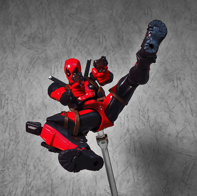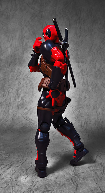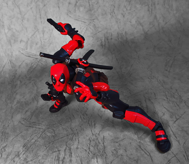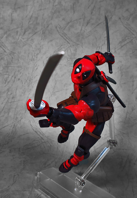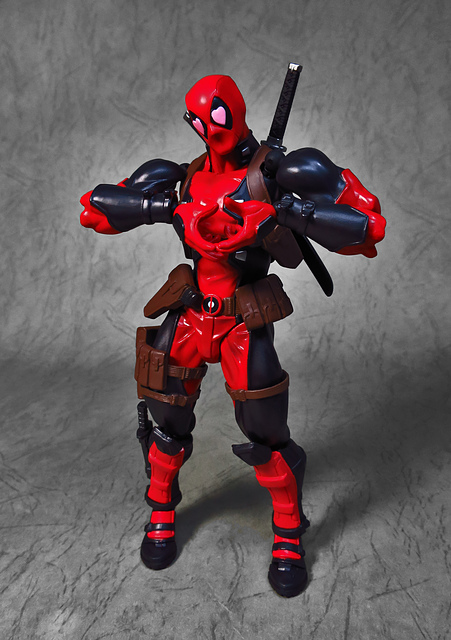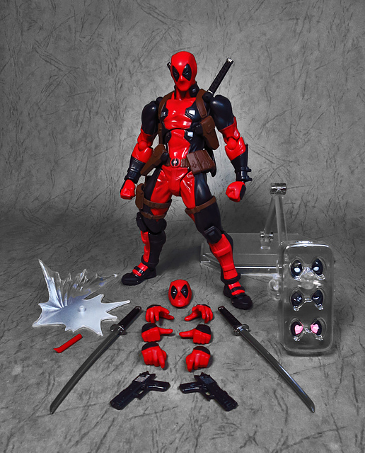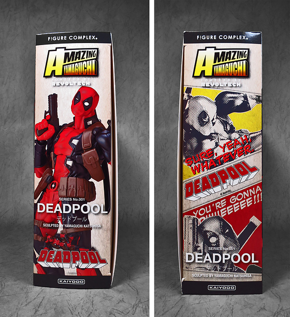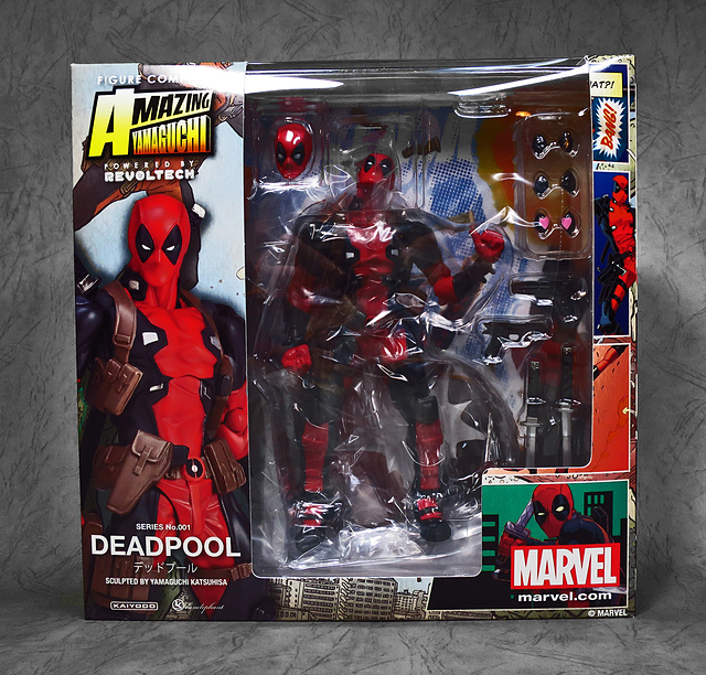 以日式風格重新詮釋美漫的超級英雄,這樣「混血」而生的可動人偶近年來已成為另一股潮流,在百家爭豔的良性競爭之下,也間接加速了這些可動玩具的進化,其中,較早踏入這塊市場的海洋堂(KAIYODO),則是順應了這個趨勢,推出了全新的轉輪科技子系列「AMAZING YAMAGUCHI(驚奇山口)」,揉合了MARVEL高人氣的超級英雄以及海洋堂的王牌原型師山口勝久的絕佳組合,光是情報的釋出就讓人興奮不已,而作為打頭陣的第一砲,竟然還是今年年初最火紅的反英雄角色「Deadpool(死侍)」,可說是還未上市就造成玩家間的轟動與期盼。在山口勝久的親自操刀與加持下,這款死侍的表現確實不負眾望,雖然少了招牌的山口式斜切關節,但是在轉輪關節與