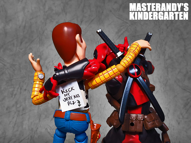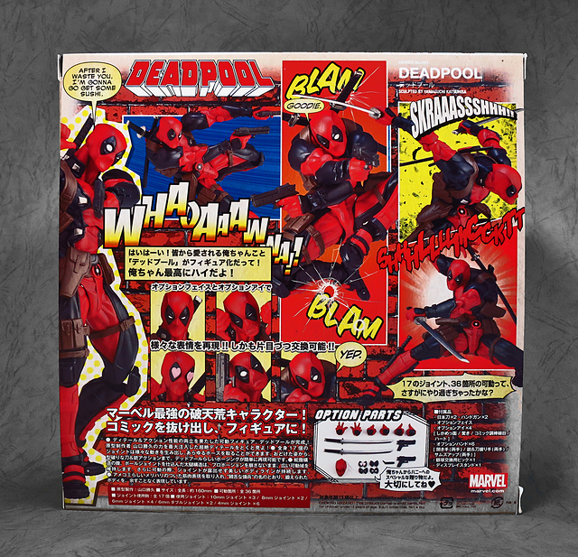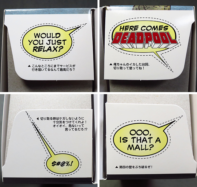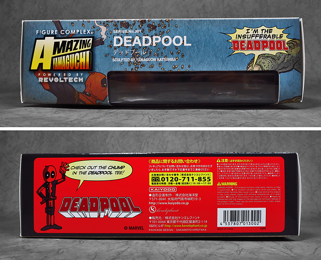 ↓外盒,除了死侍本人在盒內擺了個非常囂張的動作外,可別忘了欣賞周邊的漫畫風格盒繪喔!