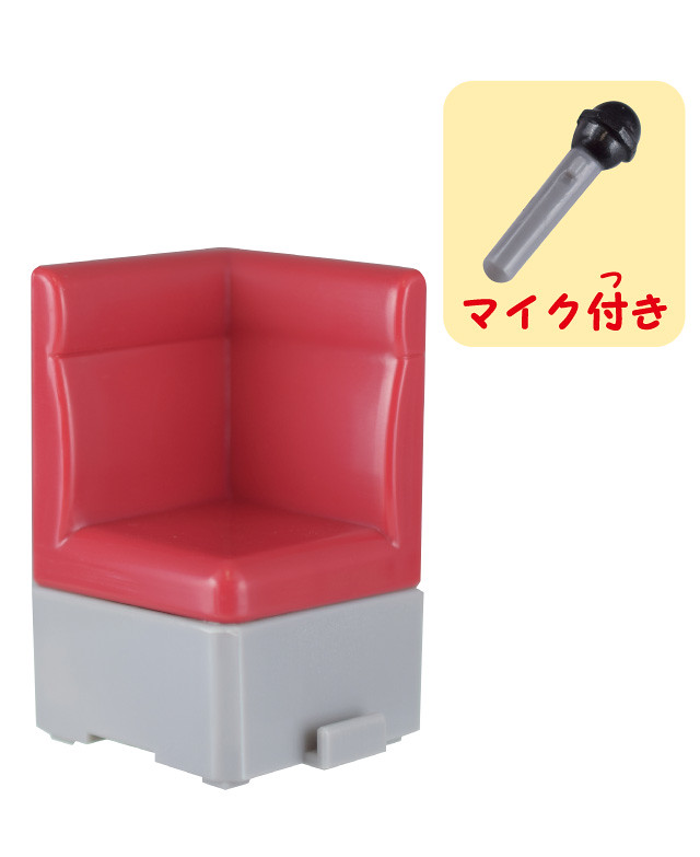 這次所要推出的「卡拉OK」配件組共有五個款式,三款座位區分別配備了麥克風、加油道具、以及服務電話配件、當然還有小桌子跟點歌機、以及提詞機等配件啊!買個兩套就可以組成一個豪華的KTV 包廂啦!有收藏「誰得?!俺得!!」這系列作品的玩具人不要錯過啦!