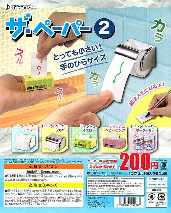 日本轉蛋品牌「J.DREAM」(Jドリーム)繼日前推出第一彈的「迷你衛生紙」(ザ・ペーパー)轉蛋作品之後,這個令人匪夷所思的系列竟然要推出第二彈(ザ・ペーパー2)了啊啊!!小編在試用過第一彈之後,真的覺得很不錯啊!誤~~