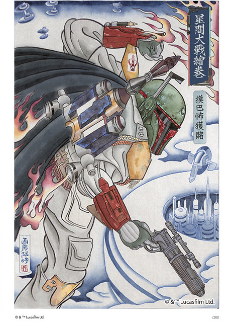 這次將推出三款作品,分別為兩款單獨販售的作品:星間大戦絵巻「暗黒卿 堕悪巣矇婁 (Darth Maul)」與星間大戦絵巻「摸巴怖獲賭(Boba Fett)」,另外有一個套裝組合“星間大戦絵巻「コンプリートセット2」”,將追加收錄第三款作品 - 星間大戦絵巻「千年飛鷹流水図(Millennium Falcon)」。