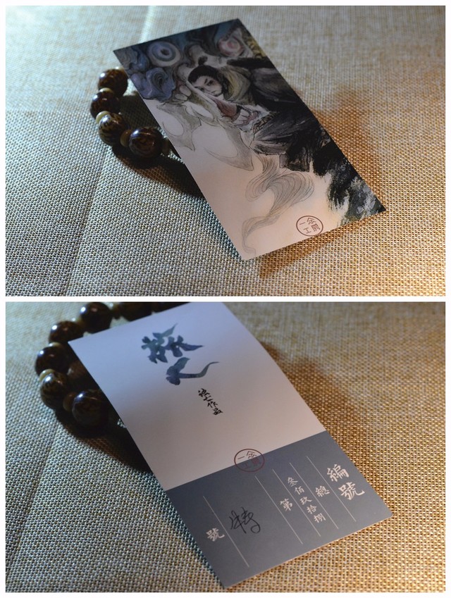 ▲編號卡。編號卡正面是產品的插畫,背面寫有編號,因為這款是測試件,所以寫了特字。而且編號的文字全部都是繁體漢字,編號數字也是繁體大寫,讓這款編號卡更加有中國氣息。