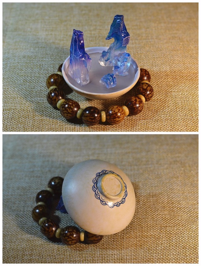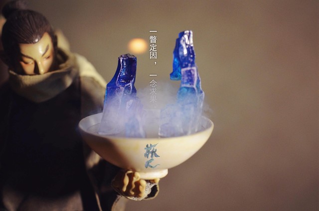 ▲一碗山水。這個配件是這款產品最有意境,也最具中國風的配件,碗的形狀類似於明代的骰子碗,底部周圈有紋路,整個碗身並未進行塗裝,簡潔大方。碗的內部,假山以及水的材質選用了透明件,假山和水的接縫處理的很自然。其中假山的漸變塗裝很到位。而且這款山水的透光效果也是相當的不錯。不過提醒各位,把玩這個配件要小心,因為材質比較脆,千萬不要讓它摔在地上!