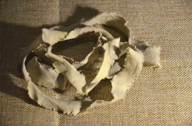 ▲圍巾B。這款圍巾採用了碎布設計,不規則的樣式,纏繞在脖子上,會有一種流浪滄桑之感,而且隨意穿搭,會很灑脫。