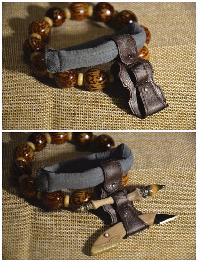 ▲腰帶。這款腰帶是我玩那麼多年12寸沒見過的,類似加了夾層, 很厚,但是很有中國風的感覺。固定是通過魔術貼,不過魔術貼隱藏很好,而且很牢固,掛上配件都不會松脫。掛配件的部位,是仿皮,質感很好,有壓紋的刻畫,而且上面的鉚釘裝飾的恰到好處。