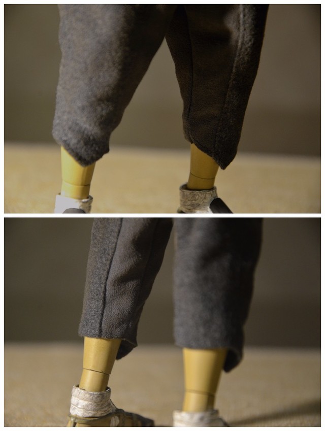 ▲褲子。九分垮褲,也是低檔褲,這種褲子的設計,也隱約增加了這款的潮流氣息,這款褲子類似於反皮毛的設計,用料很不錯,很軟,而且腳踝的部分剪裁很有設計感,非常不錯。