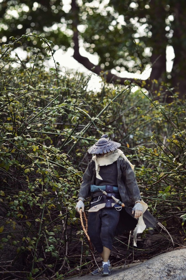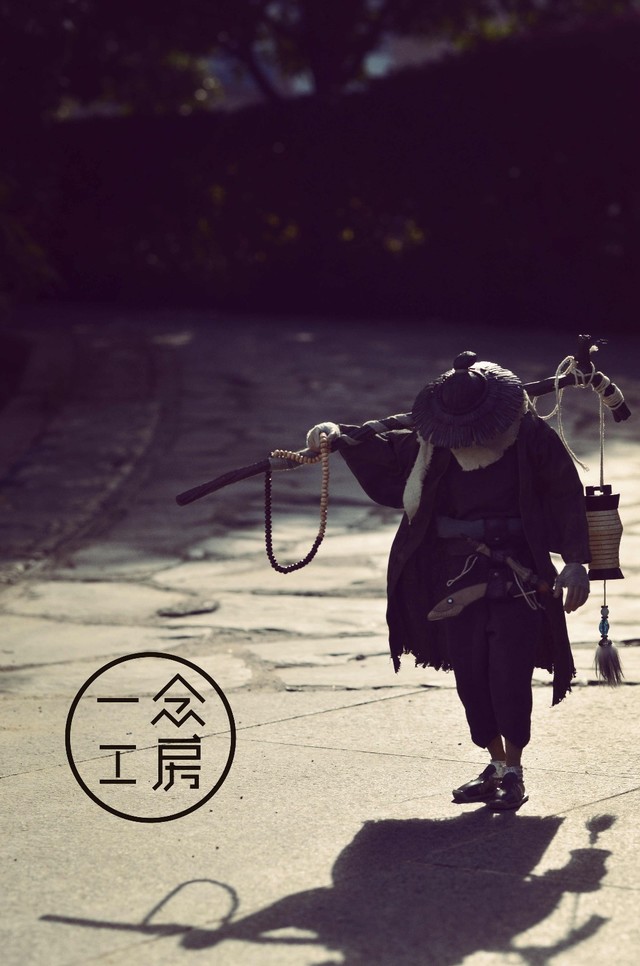 ▲不同造型穿戴圖。帶上蓑笠帽以及面具的造型,體現了不同的感覺,再搭配手杖,這種搭配,難以言喻,總之效果拔群。