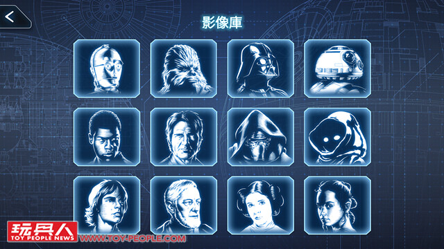 ▼ 遙控模式的第四個模式“影像庫”。在這個模式下,能夠遙控APP發出多種《星際大戰》傳奇角色的音效與R2-D2 互動。 不同的角色會有不同的動態、情緒反應,非常的有意思!令人好奇的每一個都想試試看!