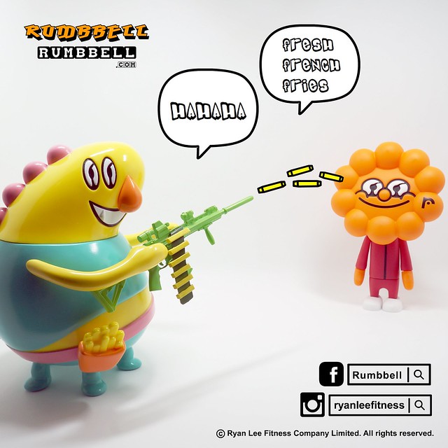 「脂肪龍」是Rumbbell 最新的朋友,加入了由Unclebell 體內脂肪細胞進化而成的FatDragon 角色。這個全新的角色雖然可愛但是一個不愛運動的人物。小編覺得在Rumbbell 的世界觀當中,這絕對是最強悍的反派的角色啊!!而在配件的部分可說是非常的豐富啊,有附上漢堡、薯條以及薯條子彈槍,根本就是小編本人啊!誤~~