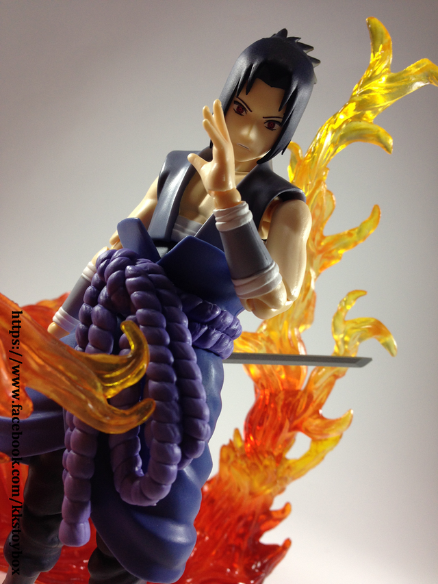 2.面相以及膚色都有做不少調整,而不是舊模直接用,多少有點誠意在。舊版佐助的膚色有點偏咖啡色,這次美白成功。至於面相,官圖剛公布的時候,滿滿邪神樣,實品修正之後好多了,寫輪眼也帥多了。至於被哥哥壁咚的表情,算是附送的吧。