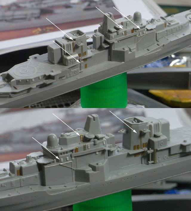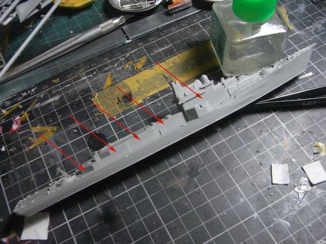↑由於是早期開發的套件(據聞是源自於pit-road的版),艦身處於一片光亮的狀態,各處都必須追加細節