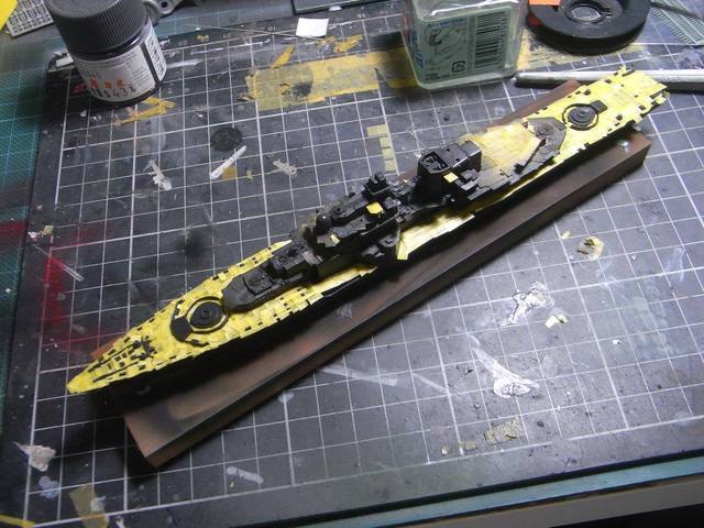 ↑噴塗完後再遮蓋下甲板,準備噴艦體色