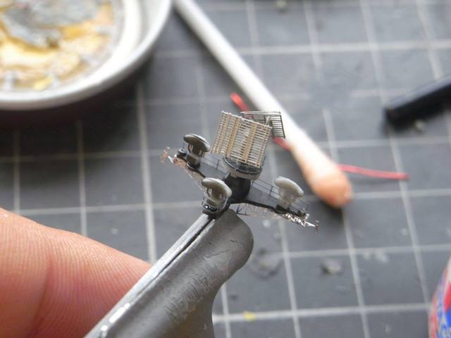 ↑後桅杆與飛行甲板細節也如火如荼的進行中