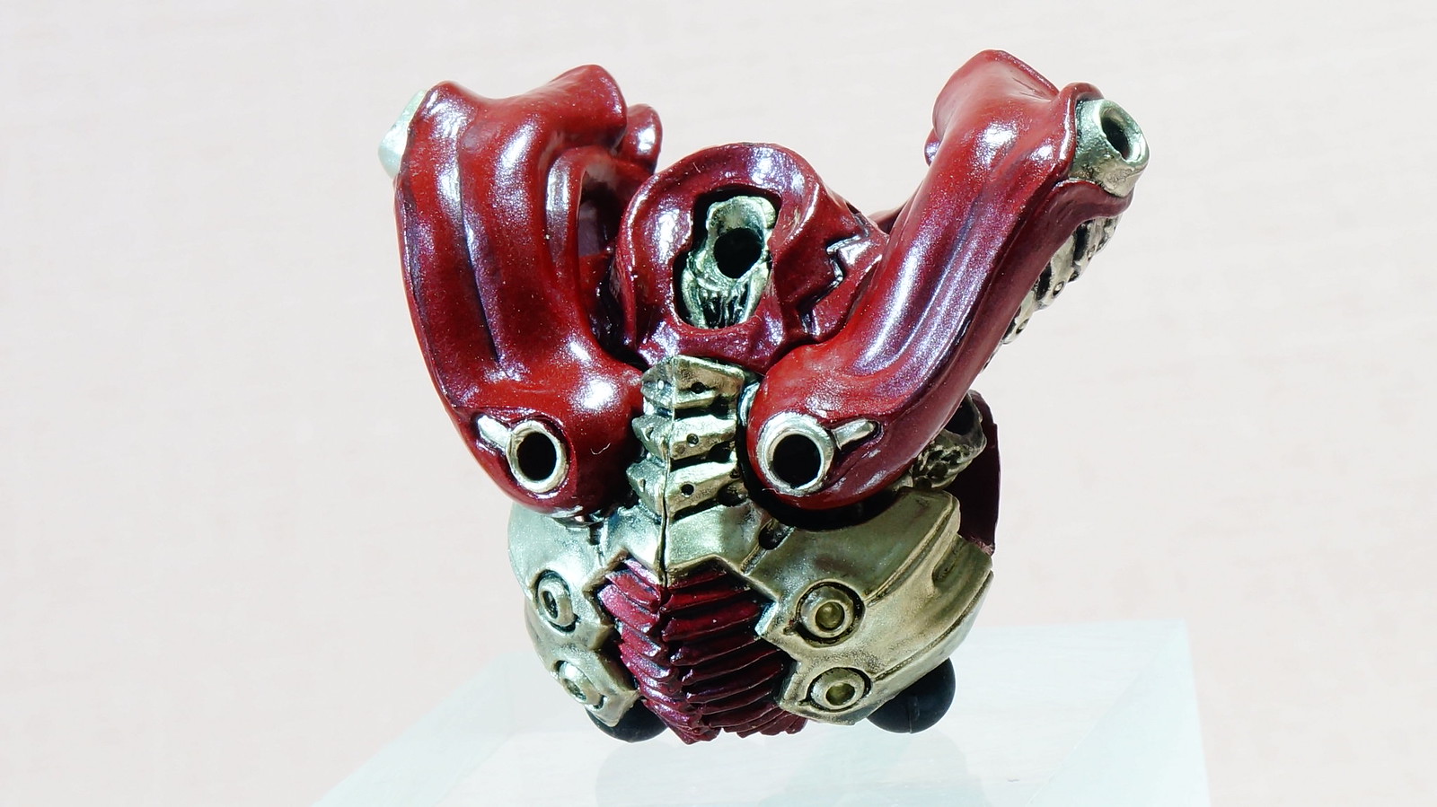 赤紅的護甲又交織著如臟器一般的金屬,一股詭異的氣息不禁油然而生
