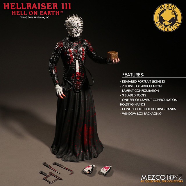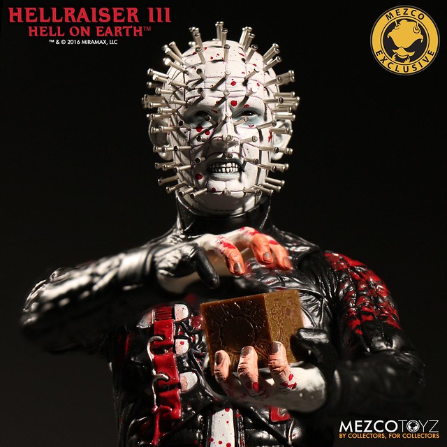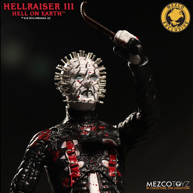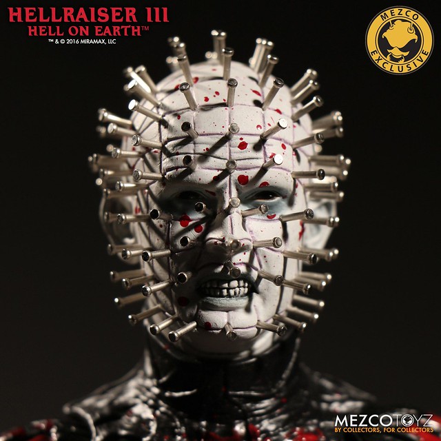 MEZCO 公司將要在其12 吋產品新推出經典恐怖電影「養鬼吃人3」(Hellraiser III: Hell on Earth)中經典的角色濺血版「針頭人」(Bloody Pinhead)的12 吋人偶作品。這次MEZCO 公司所推出的「針頭人」作品,徹底地重現了原作中的經典恐怖造型以及詭異氣氛,搭配了濺血的效果,更彷彿就像是真的從地獄來臨一樣~令人難忘的恐怖傑作,絕對是恐怖片迷值得入手的精彩收藏!