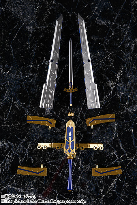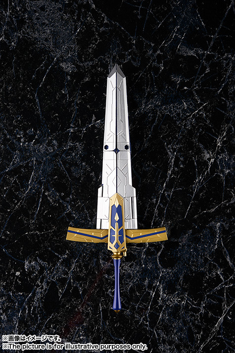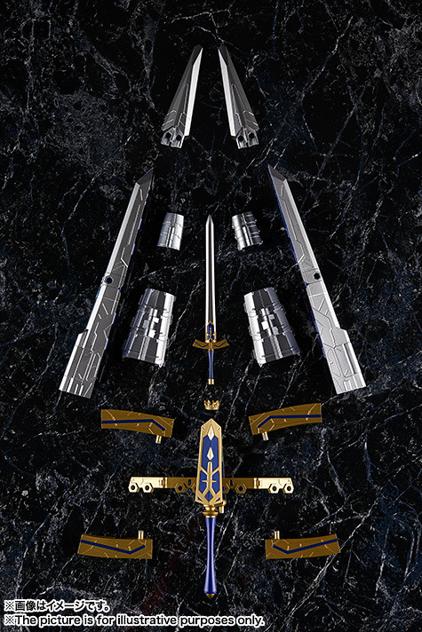 「AGP SABER/阿爾托莉亞・潘德拉岡&可變式約束勝利之劍(Variable Excalibur)」最大的特色就是那把可分解、變形的巨大「約束勝利之劍」,有著前所未有的造型機械結構,透過不同的零件組合能變換成兩種不同的巨劍模式,甚至還能將部件展開,成為SABER的披風型護鎧以及飛行器!商品中也包含了兩組支架,不用擔心平衡的問題!