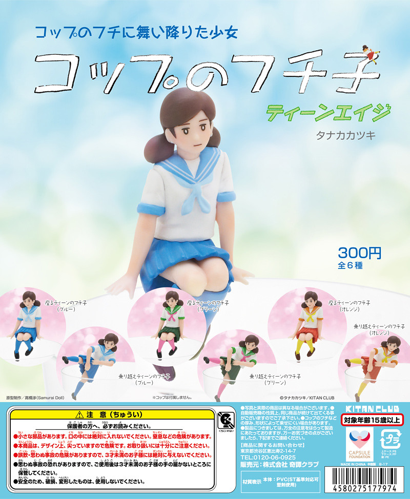 奇譚俱樂部暢銷百萬、玩具人們都認識的OL、開創全新玩具領域的轉蛋偶像 - 「杯緣子」,將推出她在成為一位OL之前的年輕時代造型「杯緣子 少女(Teenage) 」(コップのフチ子 ティーンエイジ)。