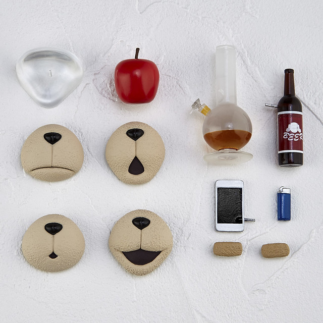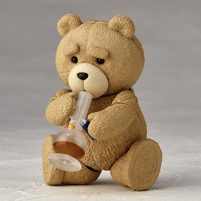 「FIGURE COMPLEX MOVIE REVO Series No.006 TED」將他身上毛髮的蓬鬆質感與紋路、渾圓的可愛黑眼再現,連肚子和右手肘毛髮脫落的損壞部位都考究地忠實重現!全身在頭、肩、手肘、鼠蹊部、腳踝共有9個可動關節,能重現電影中的許多動作!配合可動的眉毛、4種嘴部造型就能有超過萬種的組合!另外還附有「蘋果」、「啤酒」、「水煙」、「智慧型手機」、「打火機」、「台座」等泰德喜愛的道具配件,讓可玩性大大提昇!