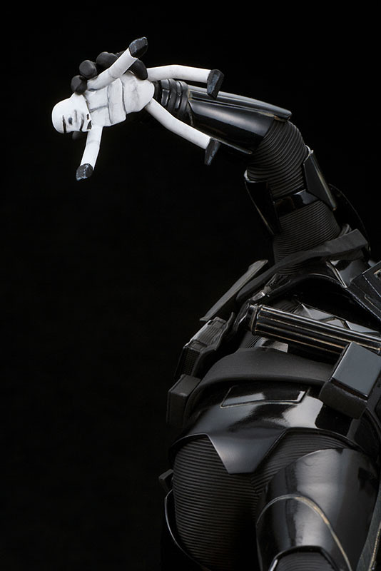 最大的特徵在全身都穿著黑色的盔甲,全身黑漆漆的塗裝更顯得與眾不同,這次也精彩再現其身上盔甲具有機械結構的細緻線條等等,並且以戰鬥奔跑的前進姿勢呈現,手上還拿著劇中所出現的「白兵布偶」,白兵布偶也是以配件形式來附屬,另外頭盔下巴的位置配置有Led發光的設計,特殊沙漠質感的地台還有他踩的腳印細節,推薦給喜愛《星際大戰》系列的玩具人參考歐!