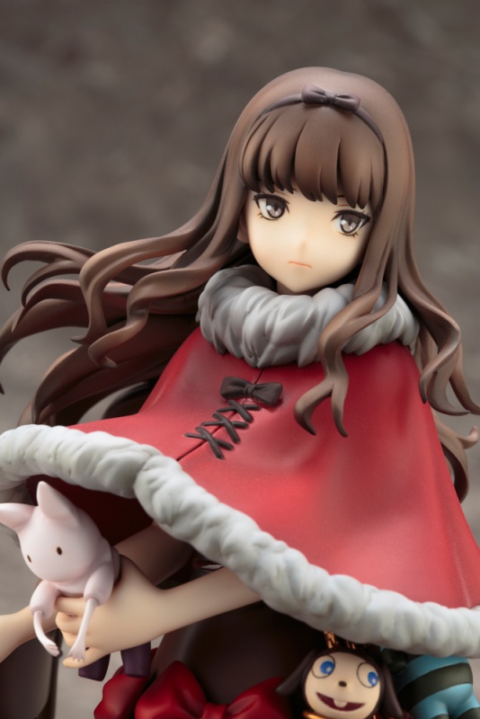 「紅之亞里亞 1/7 FIGURE」將亞里亞面無表情的美麗容顏以及柔順的長髮徹底還原,服裝造型精緻,可自由穿脫的披風絨毛部份相當真實,脫下後就能看見亞里亞樸素古典的哥德風服飾,整體塗裝也如同原作風格使用彩度較低的色彩,不過在她身上的五隻娃娃色彩依舊相當顯眼。亞里亞的身旁還擺放著紅之館店內的椅子,讓人感受到虛幻又神秘的氣氛。
