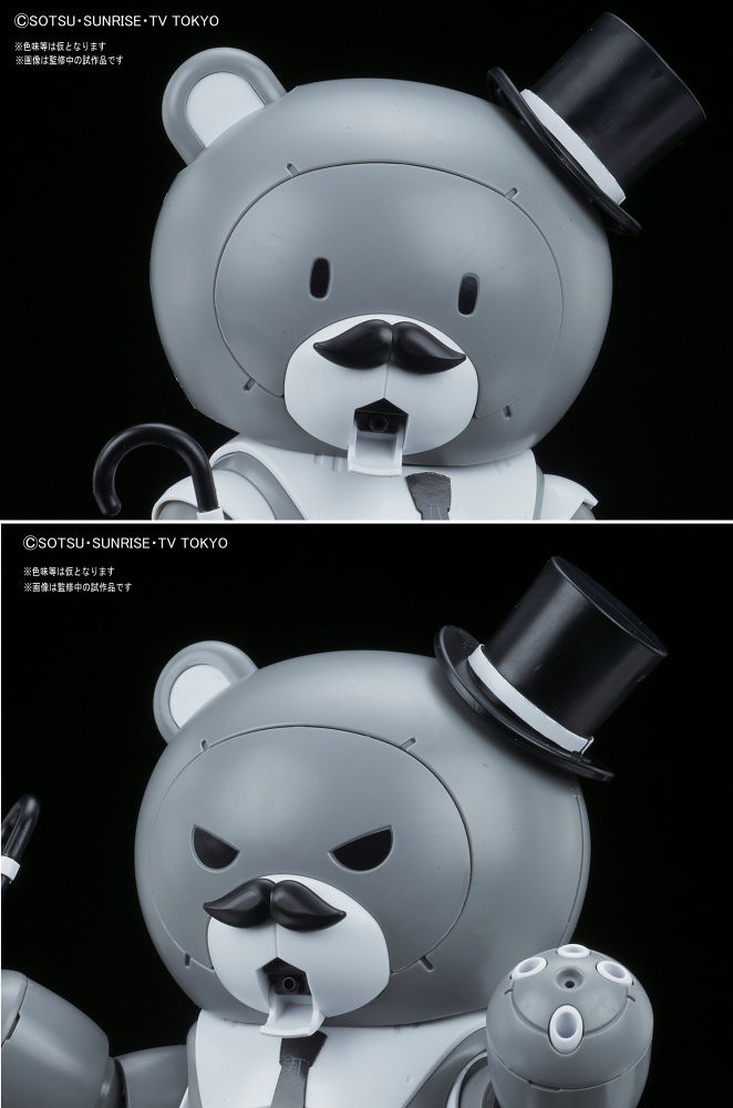 HGBF系列的「熊亞凱」作品讓不少女孩玩具人也開始動手組裝模型玩具,可以算得上是推坑成功給女性粉絲們的功臣之一,此次的「爸爸熊亞凱」多附有父親的"俏鬍子"與"黑色禮帽"和"拐杖"還有"領帶"等等的配件或是貼紙,來俯合爸爸形像的造型模樣,配色也是以沉穩的鐵灰色來呈現,喜愛熊亞凱系列作品的玩具人可以參考一下囉!