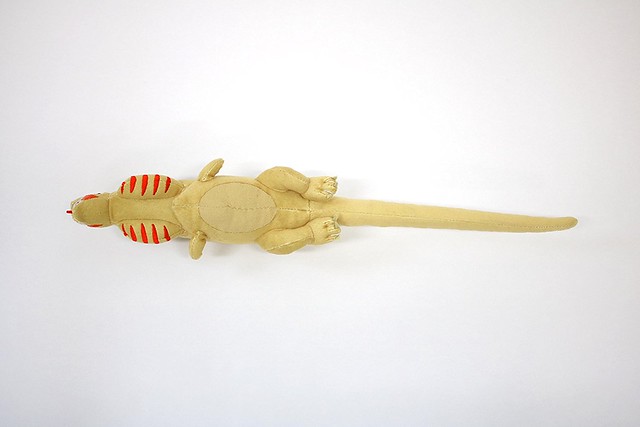 第一樣商品「哥吉拉 第二型態 柔軟抱枕」全長約 100 公分,算是相當大型的抱枕,造型濃縮了第二型態的特徵,裂嘴、鰓裂、背鰭等部位都有呈現,褪去了電影中的噁心感而且更加可愛。