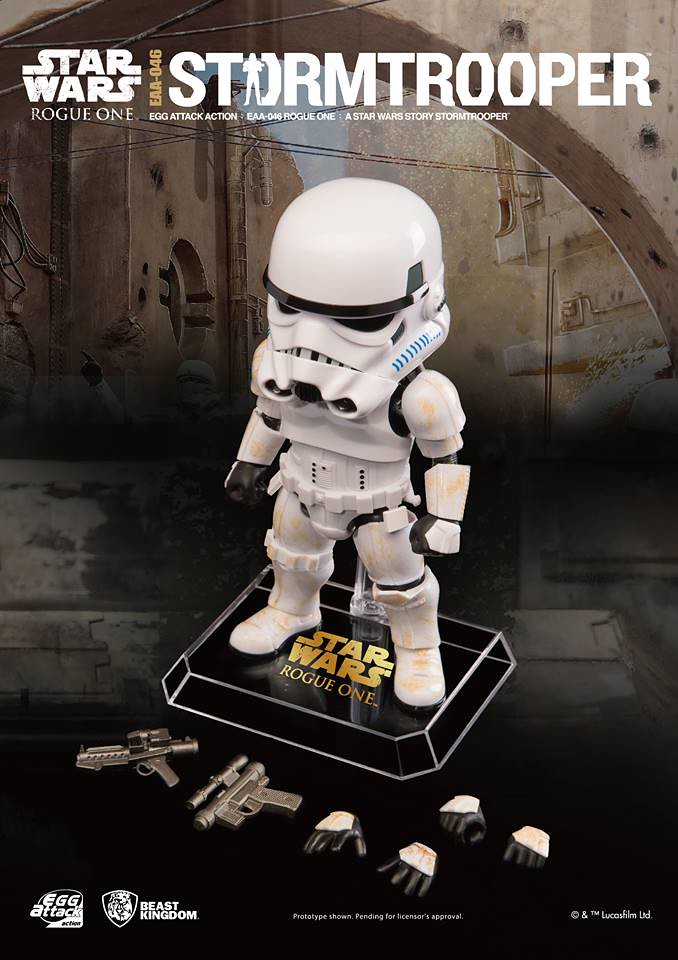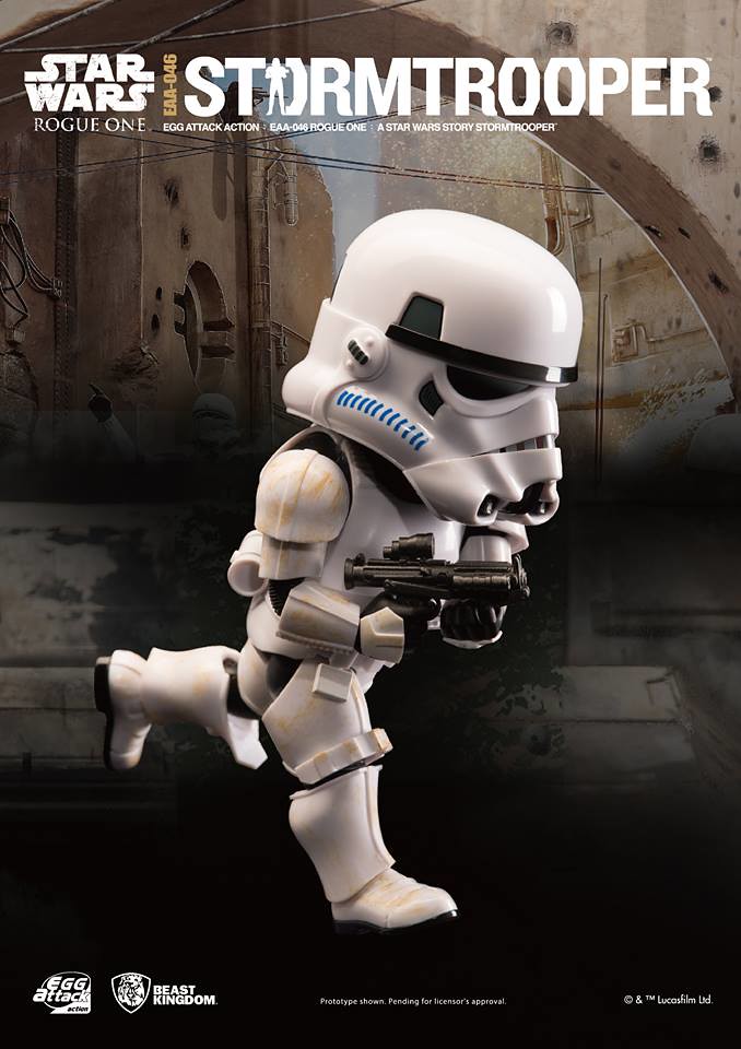 既然推出了黑武士「達斯.維德」的作品,怎麼會忘記他最忠實的軍團呢?!野獸國公司也將在旗下Egg Attack Action 系列推出最新星際大戰外傳:俠盜一號(Rogue One: A Star Wars Story)版本的「帝國暴風兵」(Stormtrooper)的作品。喜愛白兵的玩具人不要錯過啦!