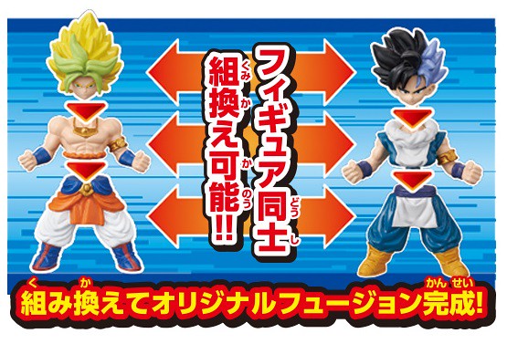 日BANDAI萬代玩具公司將推出《七龍珠融合》盒玩之作,這次以3DS遊戲《七龍珠融合》當中進行的角色人物為題材,每款的角色都設計有"同尺寸的卡榫",讓玩家可以任意組合頭、手與腳部等等,這次將推出遊戲進行所出現的特殊人物,像是"孫悟空"加上"ブロリー"融合成為「卡羅利(カロリー)」(角色名稱暫譯)等等,單獨的每盒都內附有一個配件,收集五個配件還可以組成高約11公分的「馬克西融合賽亞人(マキシフュージョンサイヤ人)」,喜愛《七龍珠融合》遊戲系列的玩具人可以參考一下歐!