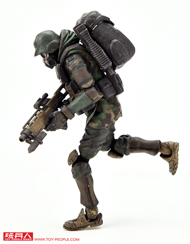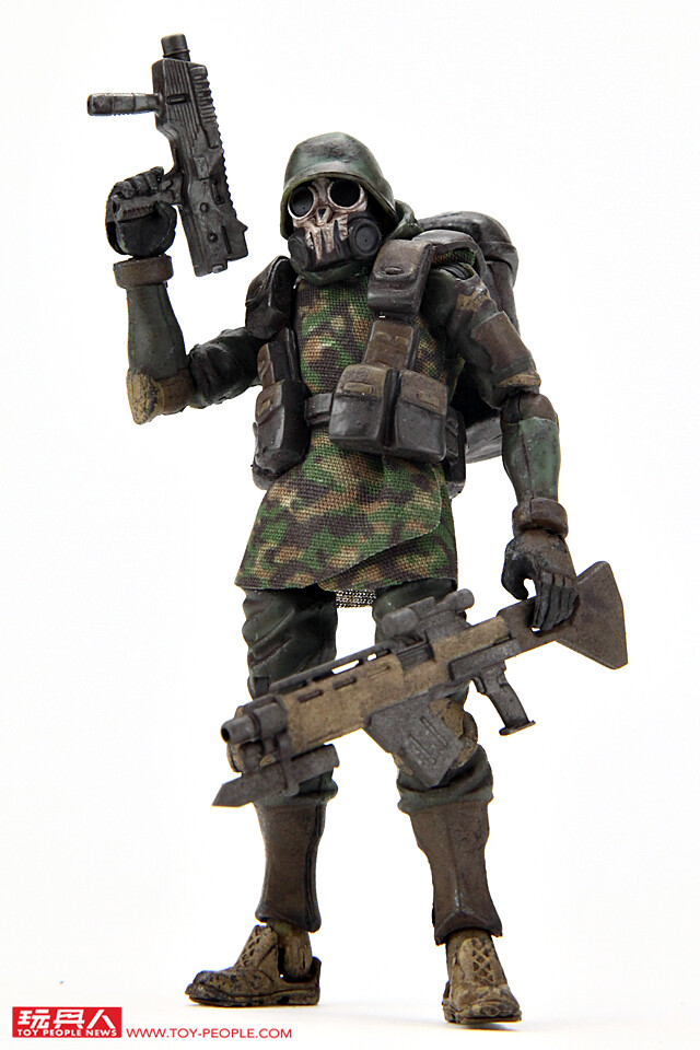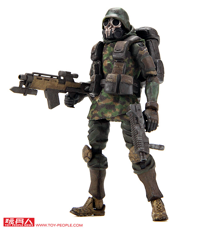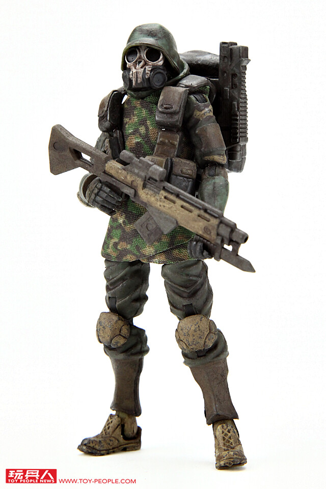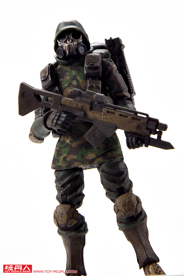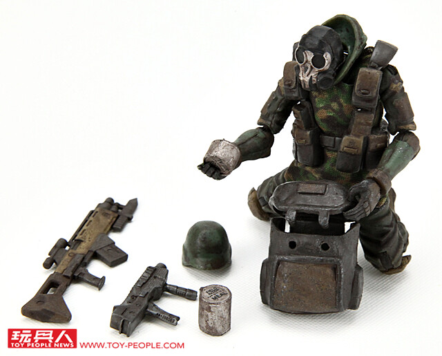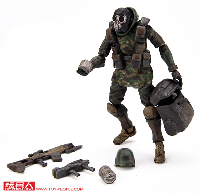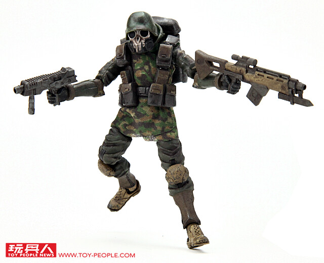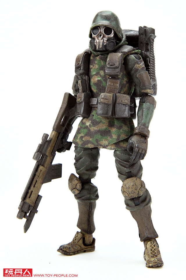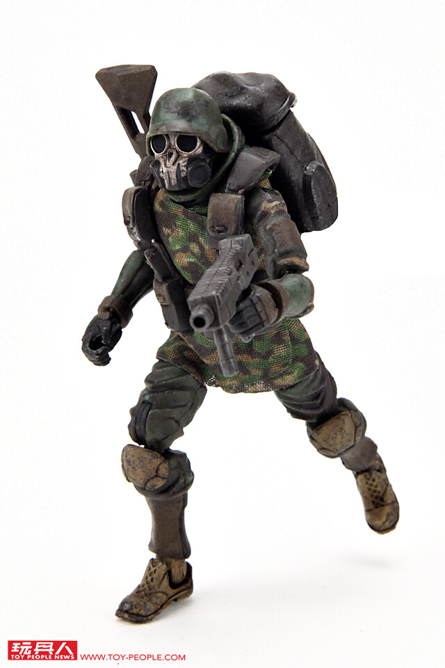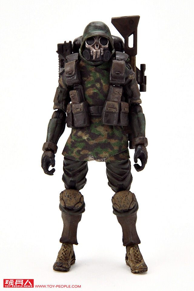▼ 第303 海軍陸戰隊最大的特色在於每位士兵的臉部都塗裝了恐怖的白色骷髏頭,搭配上防毒面具上眼睛部位的兩個大黑孔,看起來更加地駭人。 頭盔使用了軟性材質,能夠自由穿脫改變造型,服貼的戴在頭上。