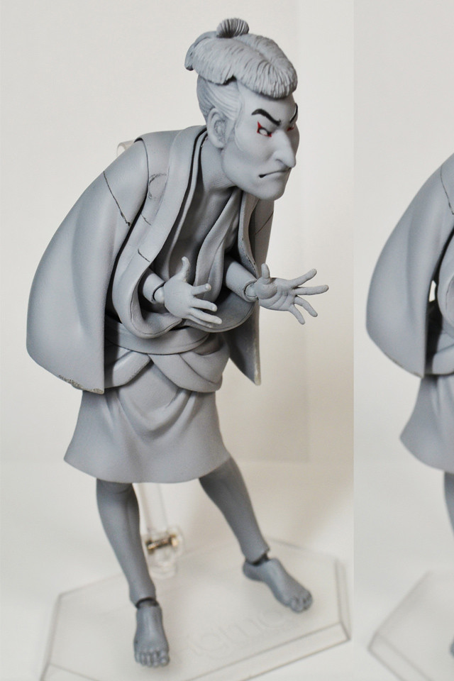 東洲齋寫樂是日本江戶時代的浮世繪畫家,擅長繪製人物肖像。在歷史上僅僅在約10個月的極短時間內,推出多幅役者繪作品之後突然消失的謎之畫師。 對於他的來歷有著各式各樣的研究,目前最有力的說法指出東洲齋寫樂是阿波蜂須賀家的能劇演員 - 齋藤十郎兵衛。 這次所推出的作品,是將東洲齋寫樂最具知名的經典作品「三世大谷鬼次の奴江戸兵衛」立體化。「大谷鬼次」是知名的歌舞伎演員藝名,並代代相傳使用,「三世」指的是第三代;而「奴江戸兵衛」是出自於歌舞伎戲劇《戀女房染分手綱》中的角色「江戸兵衛」,所以說「三世大谷鬼次の奴江戸兵衛」這個名字指的是「第三代大谷鬼次所飾演的奴江戸兵衛」。