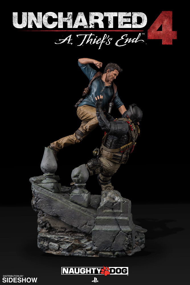 索尼電腦娛樂公司宣布將發行旗下PlayStation 4 獨佔的百萬級動作遊戲《秘境探險4:盜賊末路》奈森‧德瑞克雕像,充滿動作張力的飛身躍擊姿態,搭配上高度還原遊戲中造型的細膩製作,絕對值得粉絲珍藏留念!~