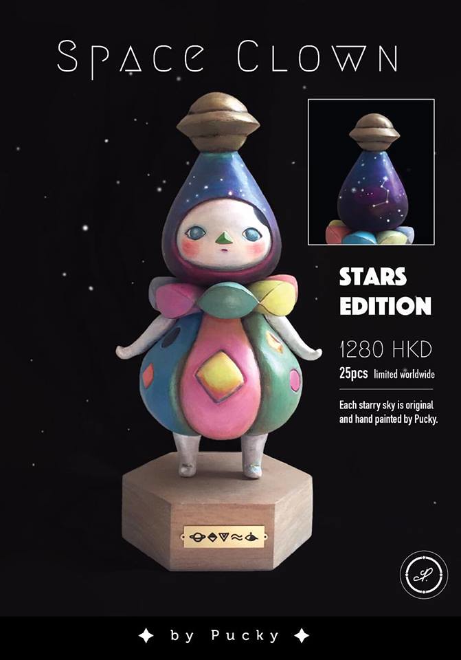 建議售價:馬戲團系列港幣580 元至650 元不等(整套港幣2,350 元)、太空小丑星空版港幣1,280 元;預計發售日期:馬戲團系列現正於PUCKY 網路商店販售中、太空小丑星空版於TOYSOUL 2016 期間會場F13 攤位販售。