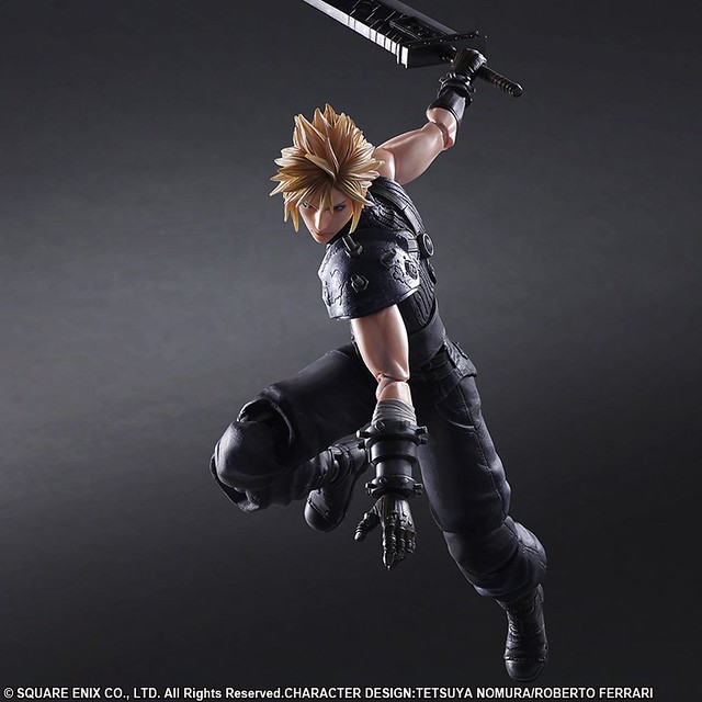 在令全球玩家引頸期盼的《Final Fantasy VII Remake》發售之前,史克威爾艾尼克斯終於推出了以新造型為基礎的「PLAY ARTS改 克勞德·史特萊夫」。作品與「FF7AC」版有顯著差異,臉部更為消瘦、眼神銳利、肌肉線條也更為明顯,將重製版中的3D模組完整重現。身上全黑的「士兵1st」服裝透過顏色深淺、光澤變化產生層次,各部位的質地真實,肩甲上還能看見龜裂的痕跡。配件附上了三組手掌替換零件以及最重要的武器「破壞劍」,這把破壞劍使用光澤度較低的金屬色塗裝並製造出刮痕等舊化處理,讓老玩家們更能感受到這把劍的故事性,同時也附有連接零件,能將劍掛在克勞德背上。